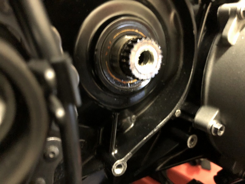 エンジンから飛び出しているのですから、ここからオイルが飛び出さないよう、オイルシールが取り付けられています。